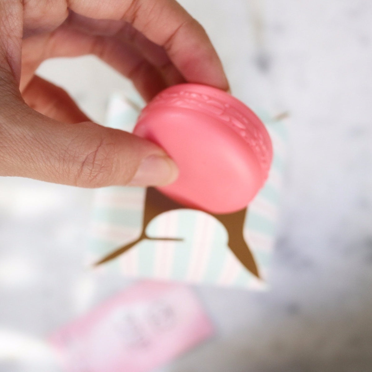 Presentación en un coqueto macaron que puede ser re usado como joyero.