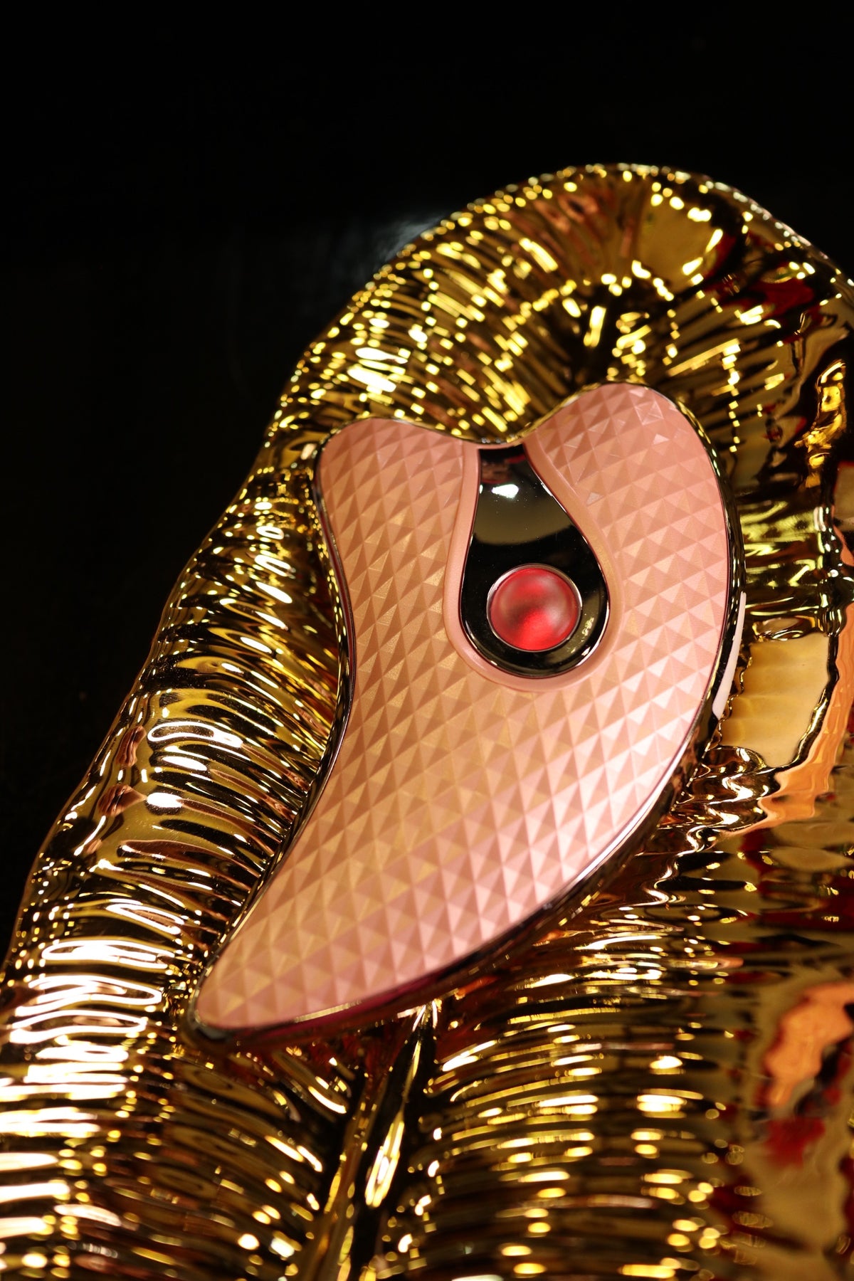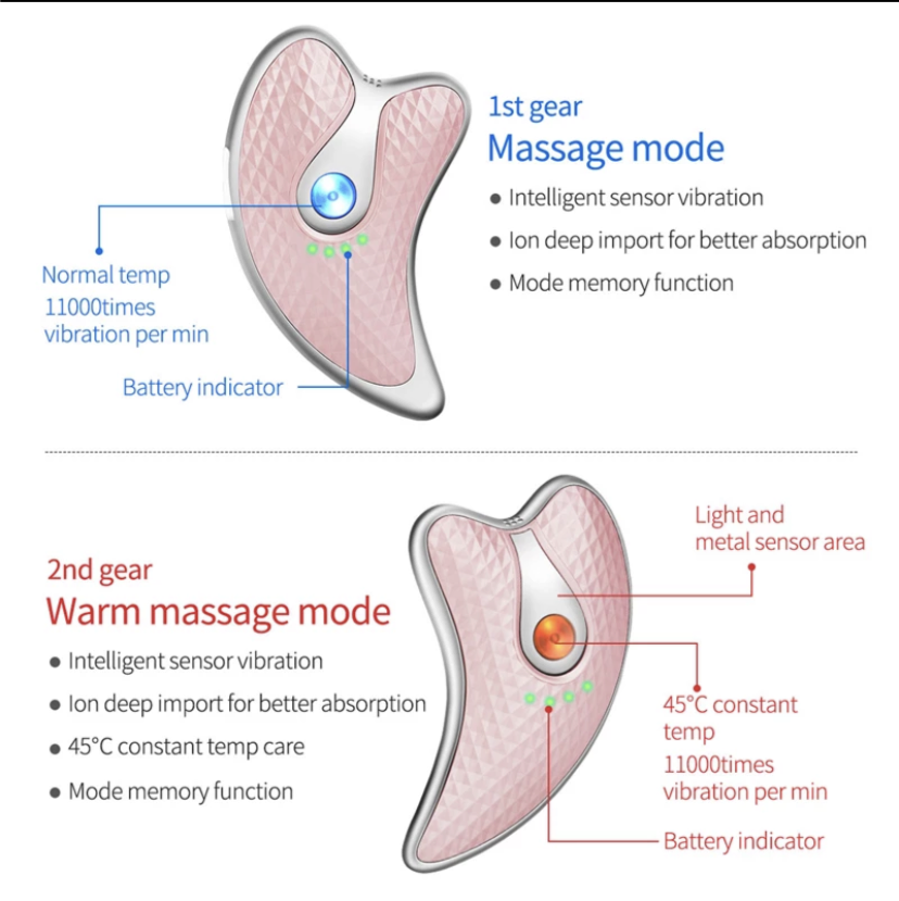 Este dispositivo además de darte in delicioso masaje facial, trabaja con vibración ultrasónica que ayudará a tonificar tu piel, desinflamar y refinar el contorno de tu rostro dando una apariencia lifting.